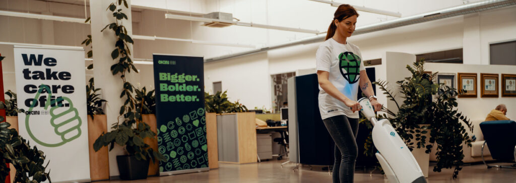 - OKIN Facility implementează aceste îmbunătățiri tehnologice în serviciile sale de curățenie, astfel incât clienții să poată beneficia de avantajele celor mai moderne metode, care sunt ecologice, eficace și eficiente.